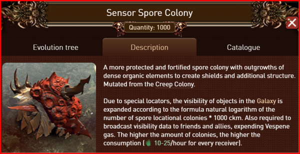 "Due to special locators, the visibility of objects in the Galaxy is expanded according to the formula natural logarithm of the number of spore locational colonies * 1000 сkm"