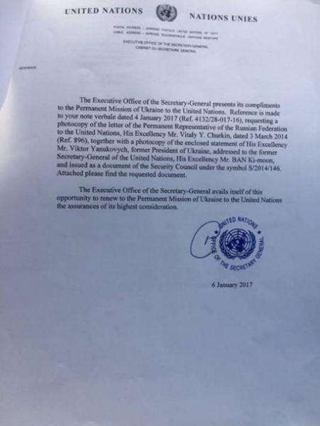 все равно не дойдет Вот тебе фотокопии заявления Януковича от 01.03.2014 г. с просьбой ввести войска Российской Федерации в Украину и все официальные материалы, которые были добавлены от РФ к заявлению представителя РФ в ООН Чуркина" которую Чуркин должен был передать в ООН. аналогичная Письмо другому диктатор Башар Асад попросил Путина ввести войска в Сирию. так что Януковича тоже слили