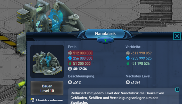 Und so kann ich das Gejammer von dir über die Preise zum Bau deiner Gebäude und zum Forschen deiner Forschung gar nicht verstehen - ja, sie werden jedes Level teurer und die Bauzeiten/Forschungszeiten auch länger... und meine Bauten und Forschungen sind noch viel teurer als deine, während die Minen kaum was hergeben (selbst in hohen Leveln nicht)
