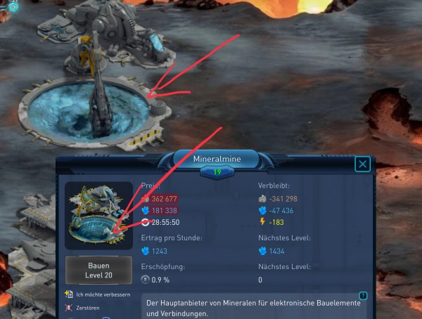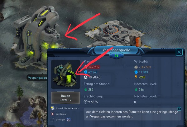 Auf Mineralmine oder Vespanquelle klicken