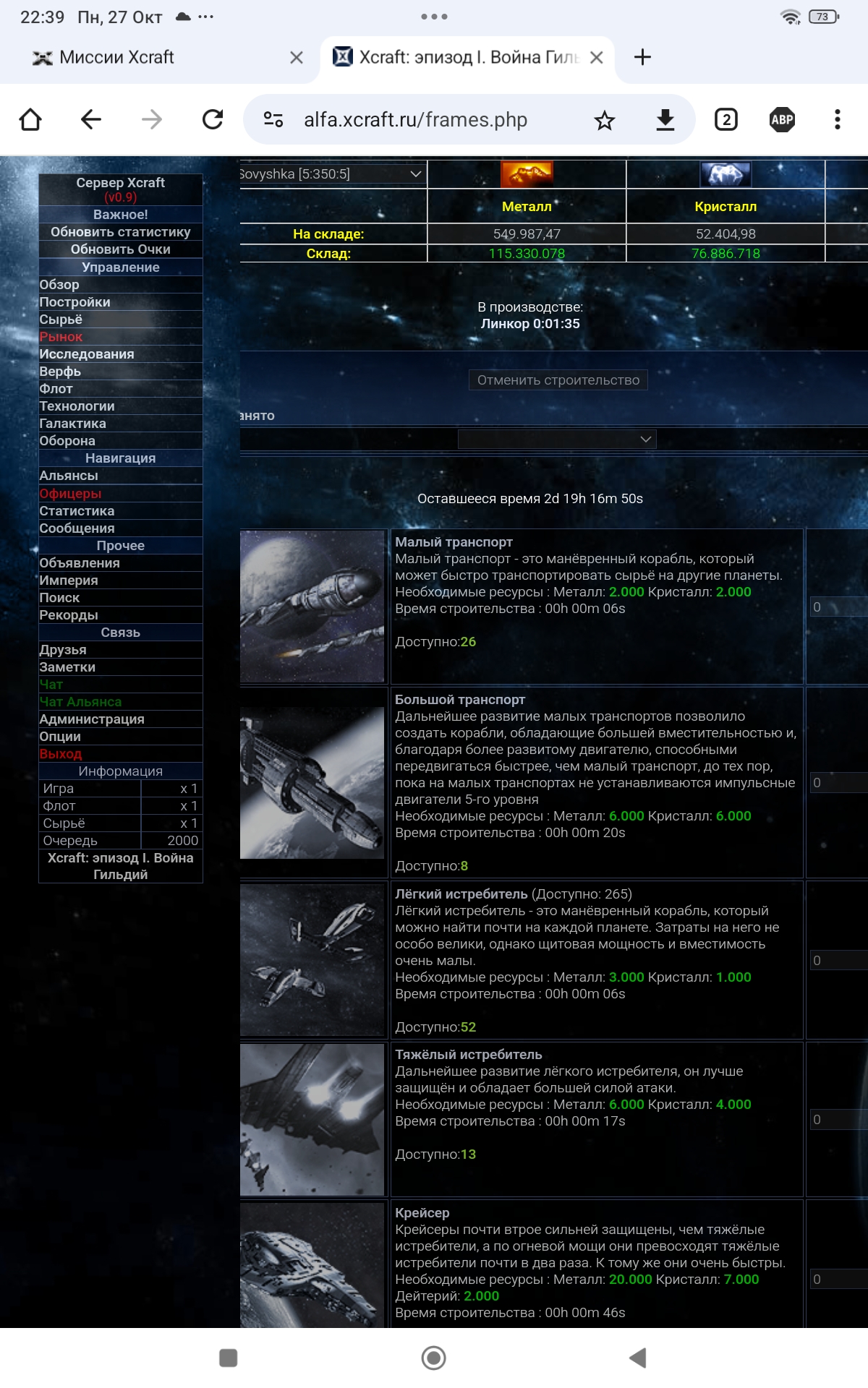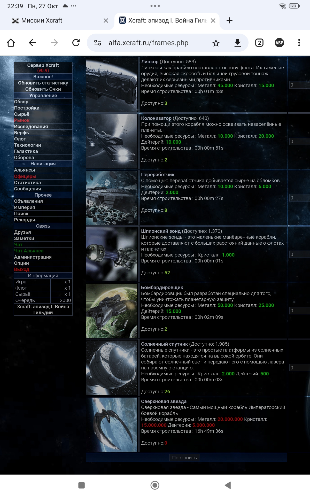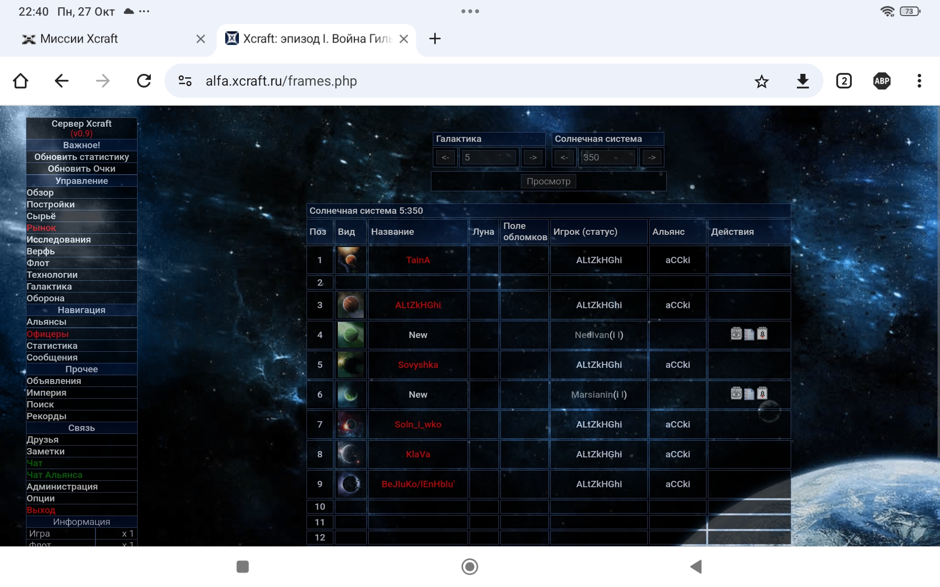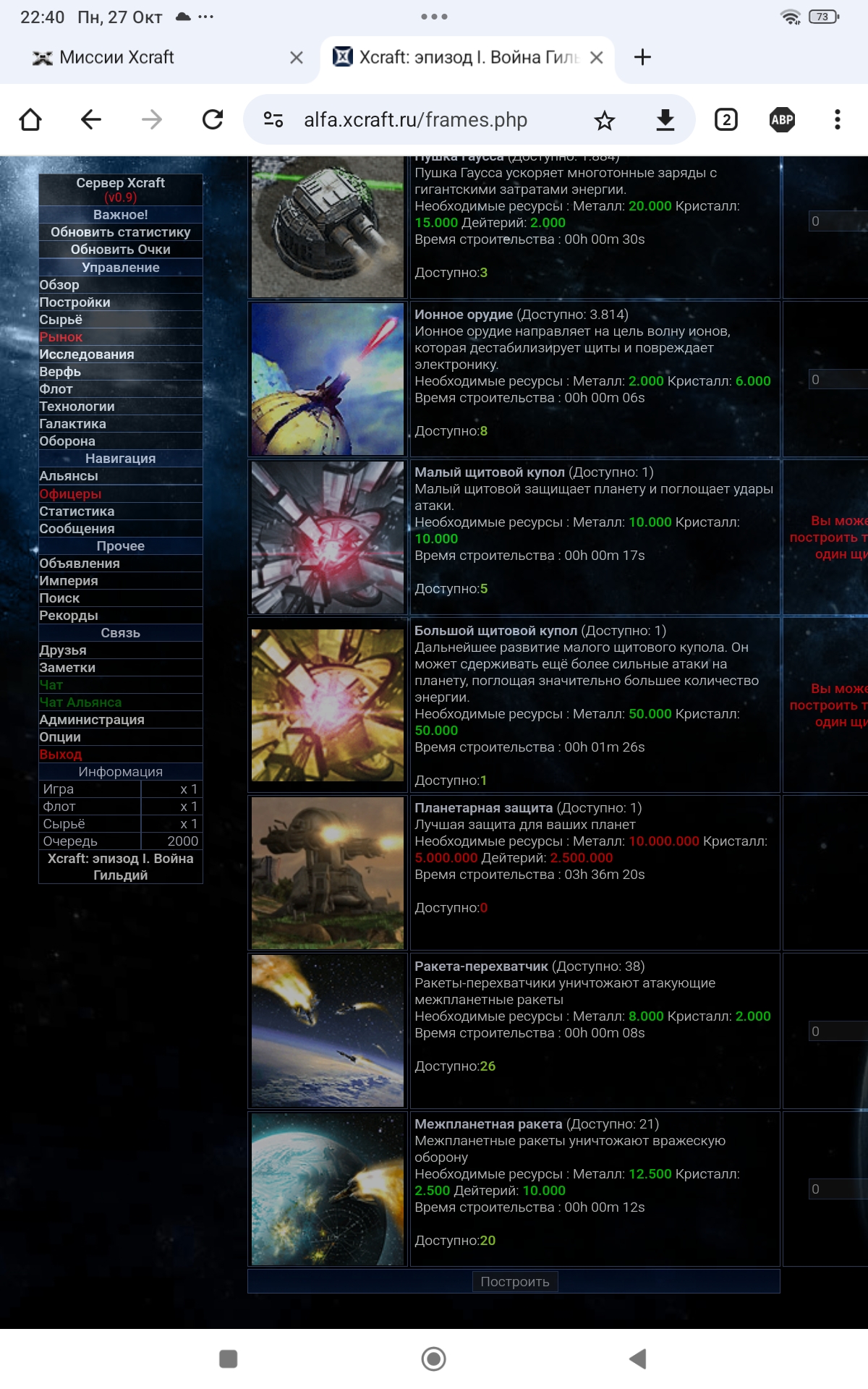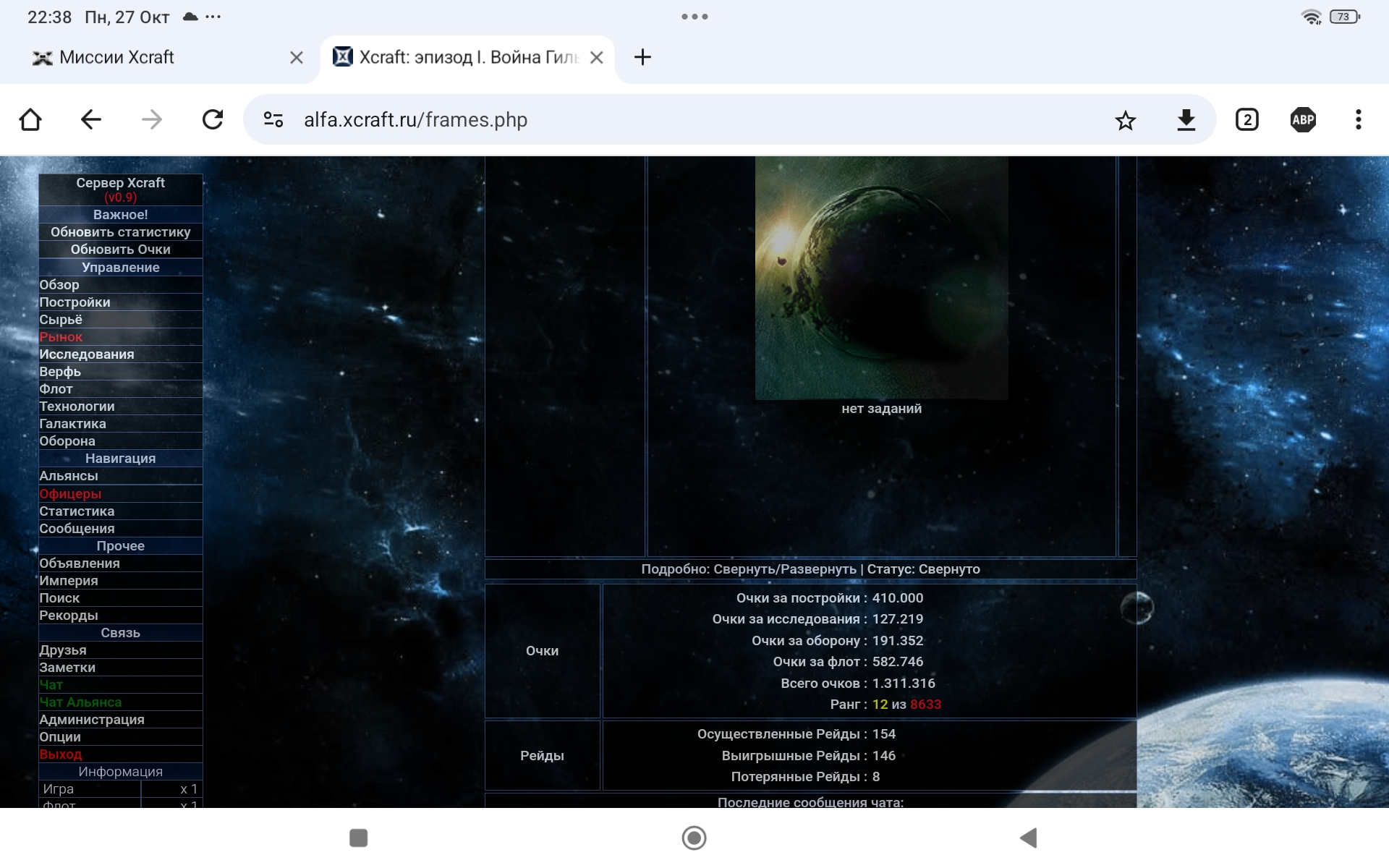Космическая онлайн стратегия Xcraft это бесплатная игра для алигархов. Пример боя >> Регистрация >> И космос весь ваш на тысячи лет...