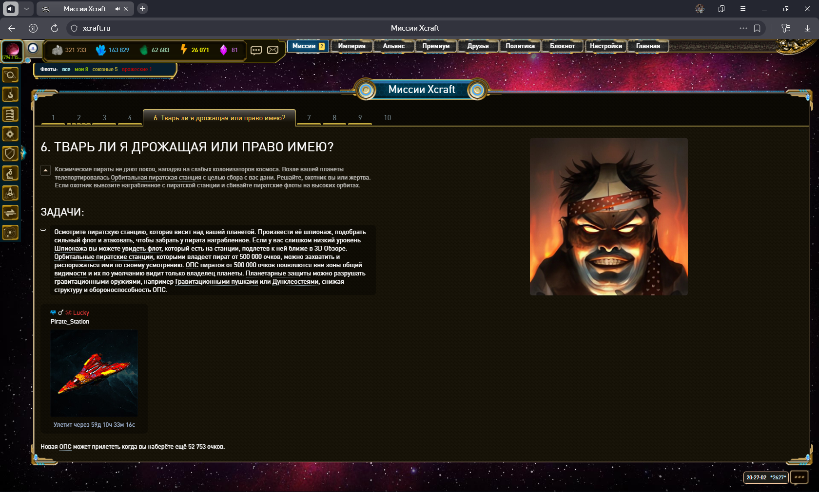 так же и с миссиями. цифра 2. Две миссии к исполнению, кроме ОПС пиратской никаких заданий нет.