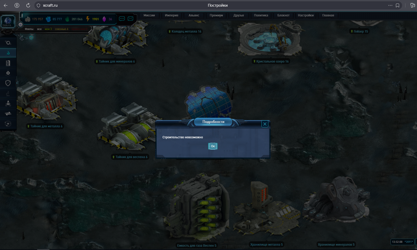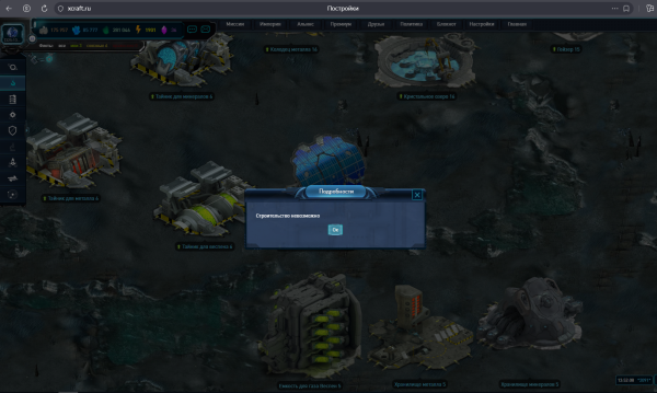 При попытке поднять уровень рудника, выдает ошибку. ресурсов хватает, свободные поля есть. При этом на другой планке за 5 минут до этого запустил строительство скважины без проблем.