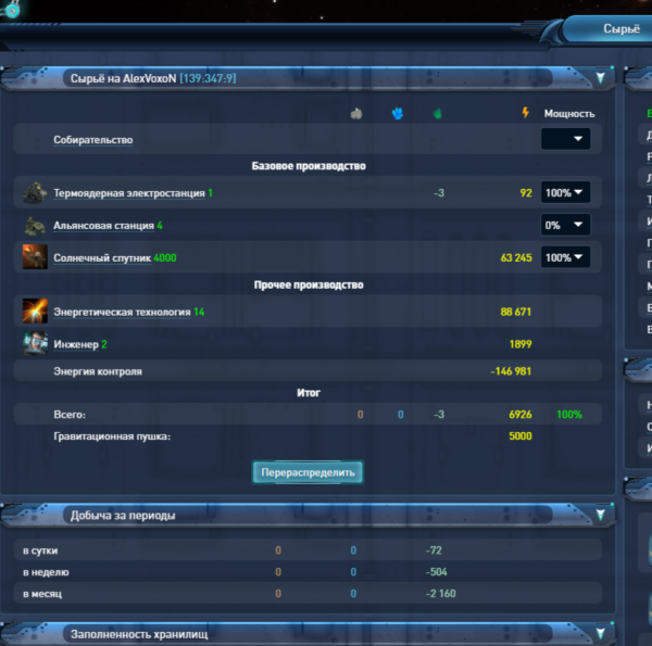 чтобы отображалось сколько потребляет ресурсов грави.пушка за сутки