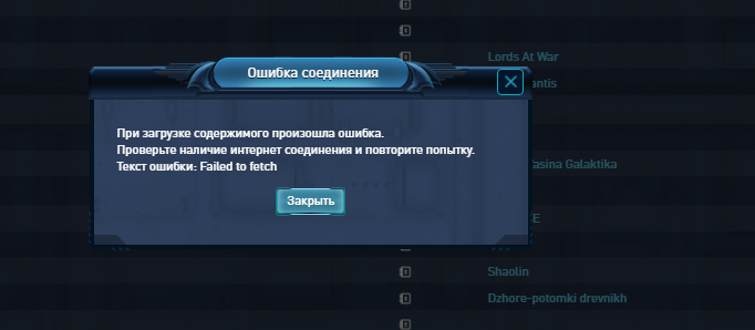 Так же нажмите на ошибку "Ошибка соединения", там появятся детали. Просим сообщить их.