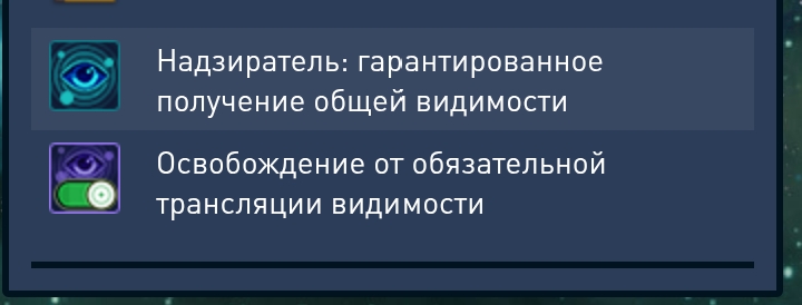 Чтобы достичь баланса между желаниями игроков в альянсах — сохранить контроль над территорией или сэкономить на раздаче видимости — руководство альянса может использовать новые привилегии, доступные при настройке званий. Первая привилегия — статус «надзирателя» — означает что игрок будет получать информацию о видимости от прочих участников независимо от того, включают ли они трансляцию для союзников. Таким образом руководство альянса сможет дать активным игрокам, участвующим в защите территории, возможность следить за ней, без требования включать видимость «всем для всех». Вторая привилегия — освобождение от обязательной раздачи — позволит указать игроков, которым не требуется предоставлять видимость даже надзирателям. Это могут быть начинающие, или жители густонаселённых секторов, где много игроков транслируют видимость одних и тех же систем (что избыточно).