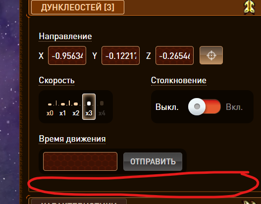 Информация о времени полёта теряется при перезагрузке страницы, для её повторной пересылки нужно поменять скорость или направление полёта.