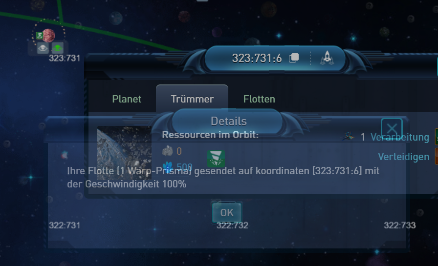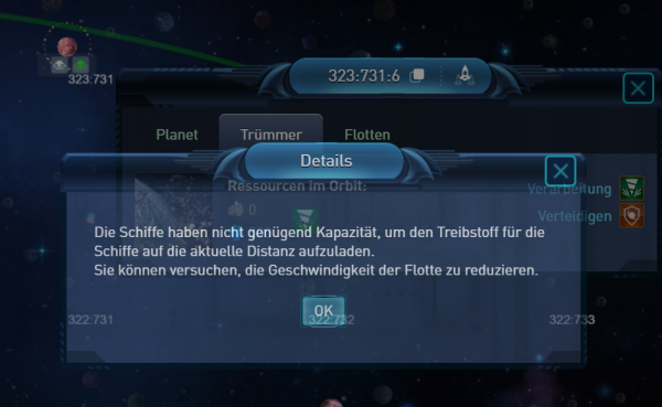 Aktueller Planet gewechselt und Button geklickt und schau nach es hat funktioniert obwohl das Planet 100 Systeme Weitentfernt ist.