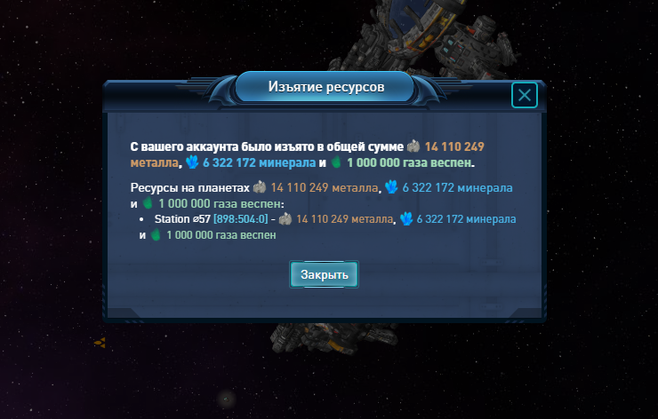Но тут вопросик возникает, нюансик, рес этот был добыт по всем правилам, мы летели, тратили горючку, теряли часть флота. А получается, что мало того, что добытый лом изъяли, дык с меня еще сняли 1лям газа , как компенсацию видимо, дык еще и газ потраченный на этого пира, не вернули, 4 ляма газа в моем случае.