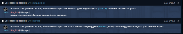 Описание: Я, имея 95к очков, атаковал игрока RIO_RUS с 194к очков, однако атака отменилась, так как, согласно отчету, я напал на "сильного игрока". Кроме того, мой флот затем пытался отступить с обороны координат по той же причине
