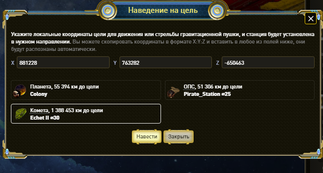 "ПРОМАХ", гравитационная пушка промахивается при стрельбе в ОПС и комете.