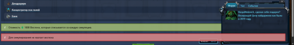Плашка "Для симулирования не хватает веспена" находится слишком высоко над интерфейсом.