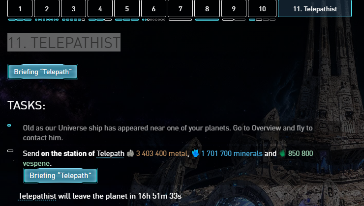 Saw the telepathist station in orbit > Completed the contact in free flight > got the briefing