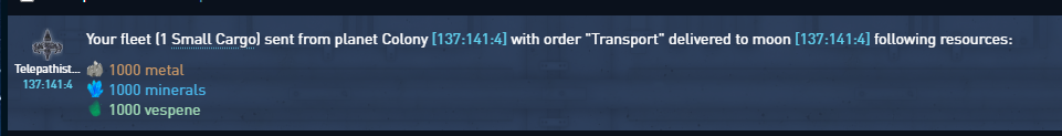 > sent the resources (did not have enough transporters and sent it in 2 batch