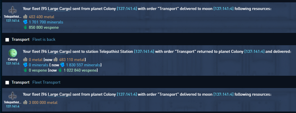 check fuel consumption of my transporters and sent some more Vespen to cover that